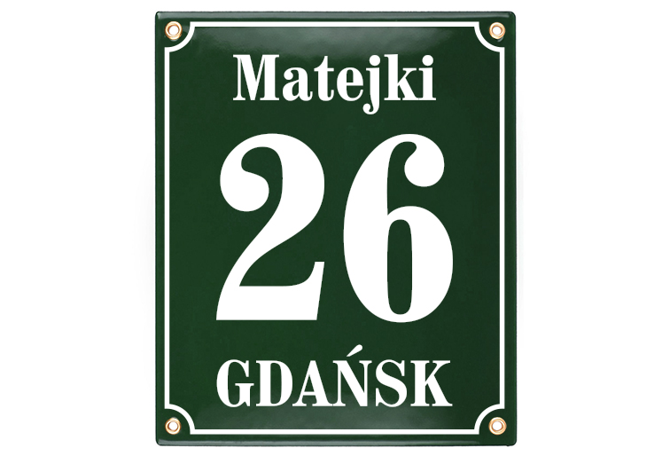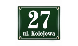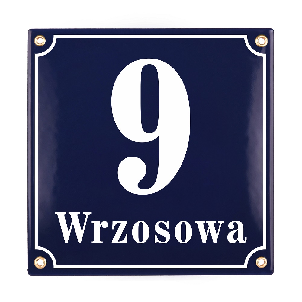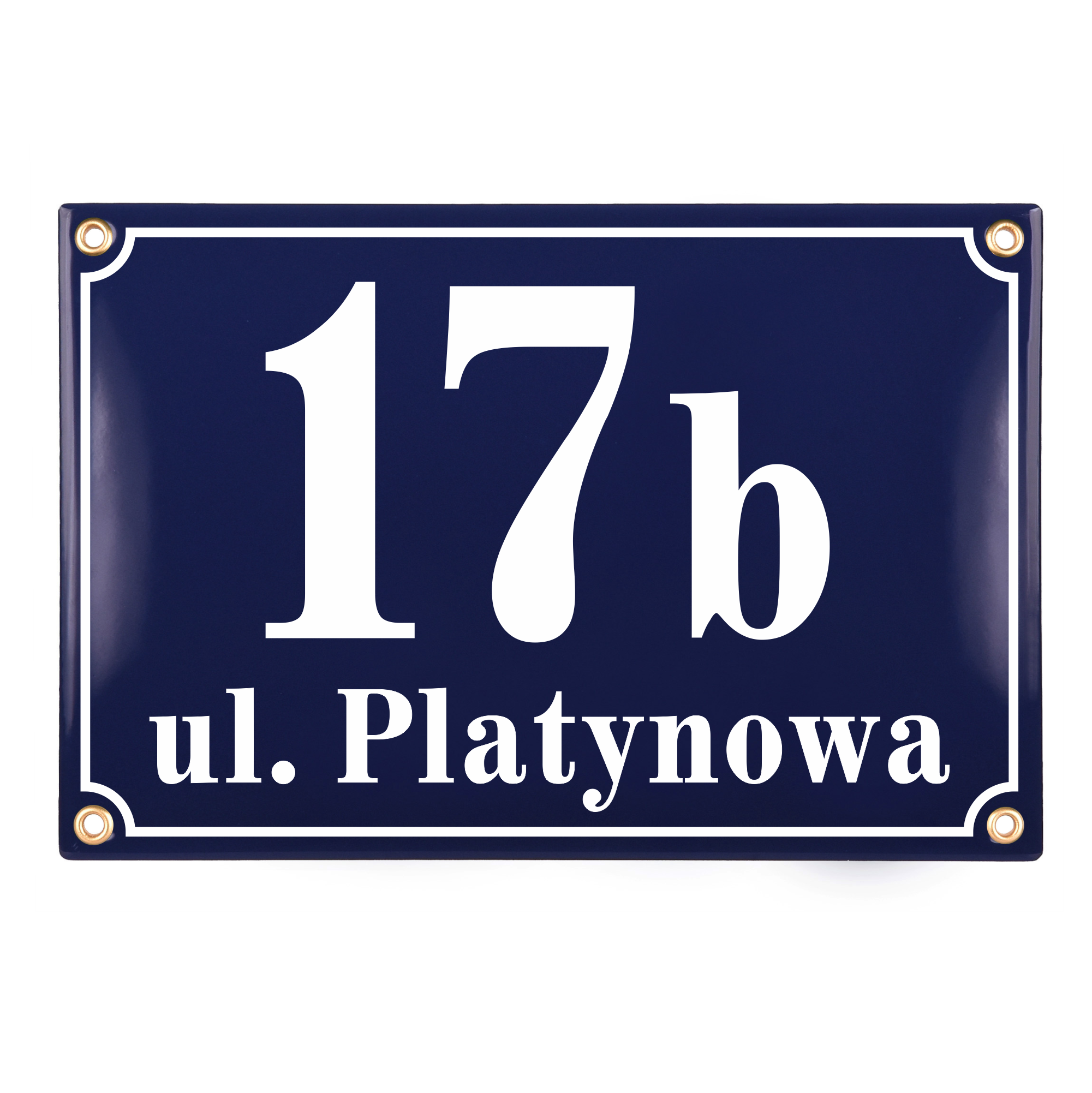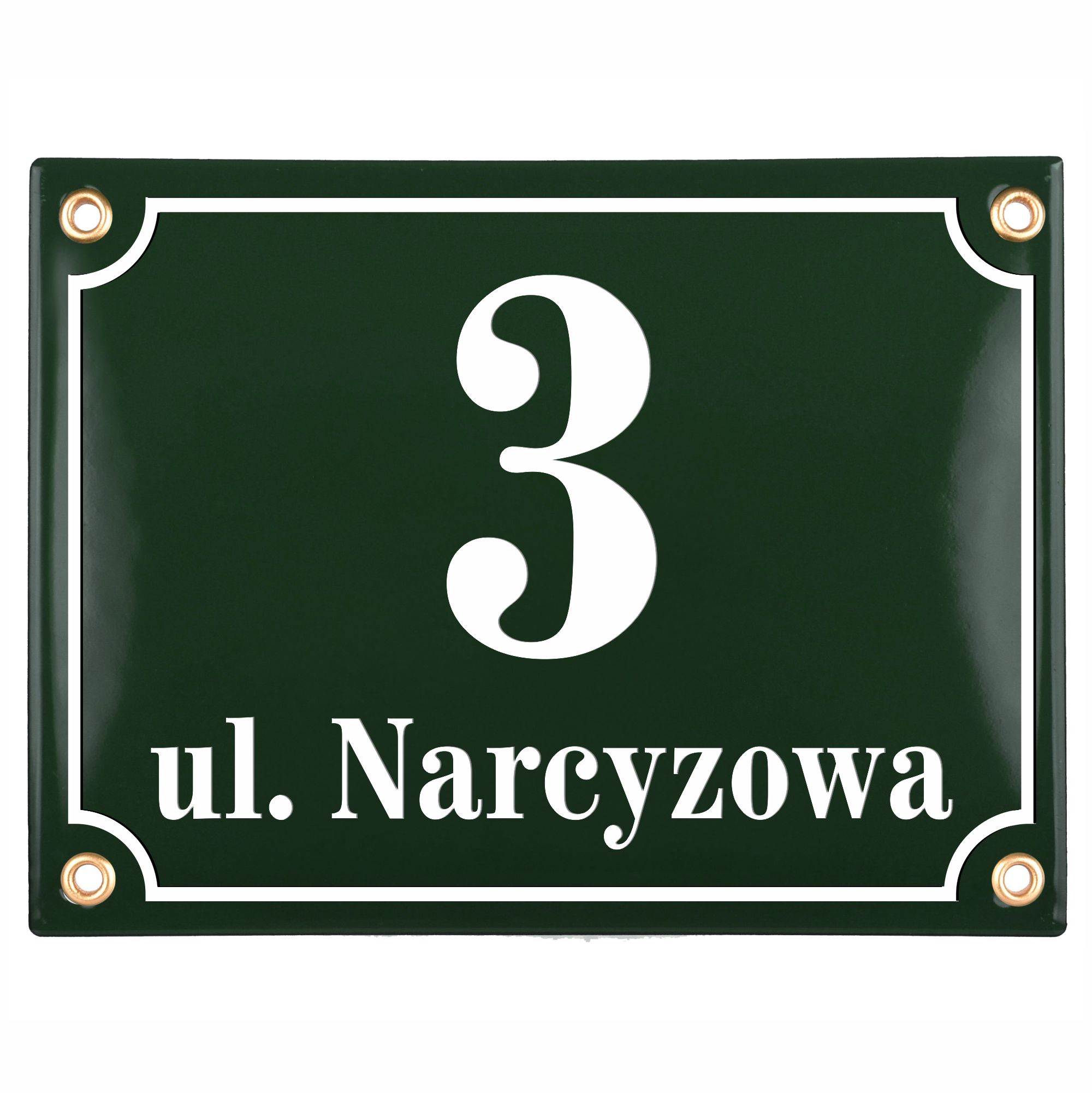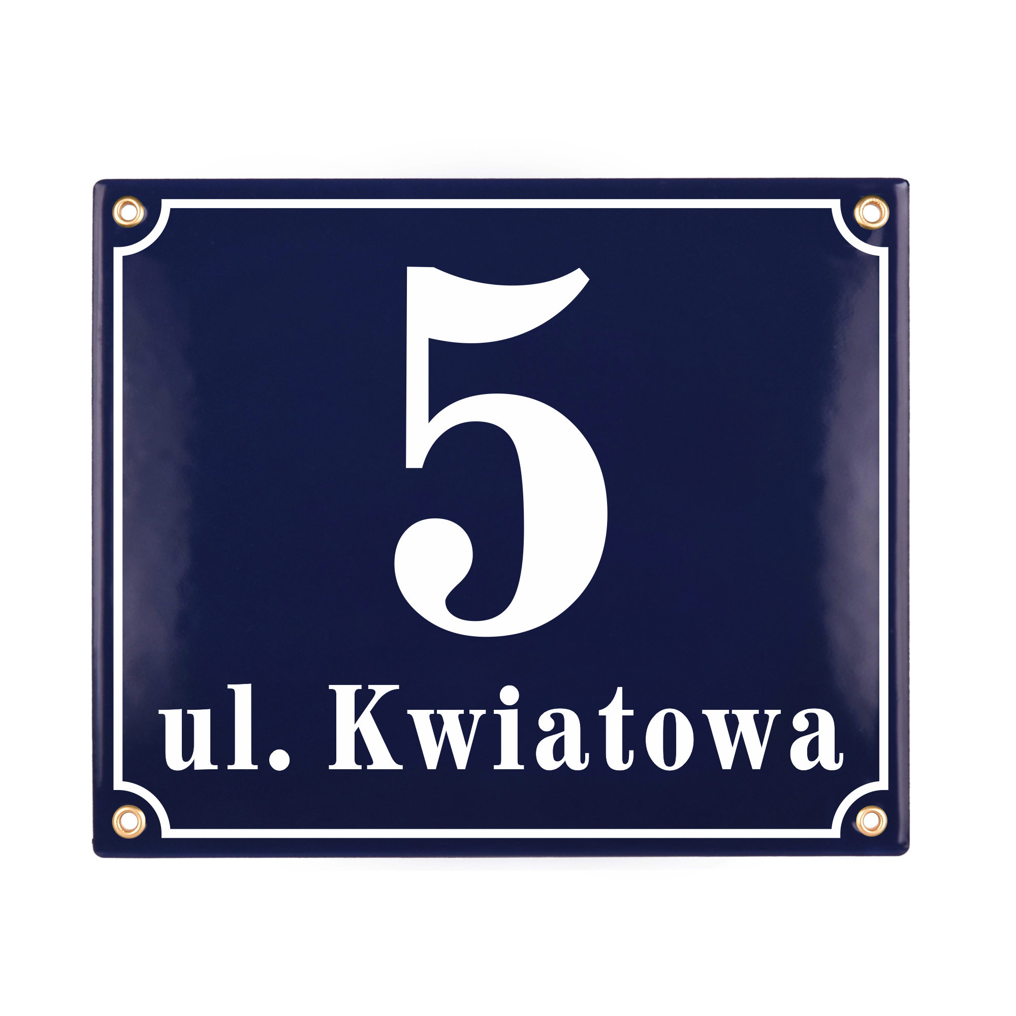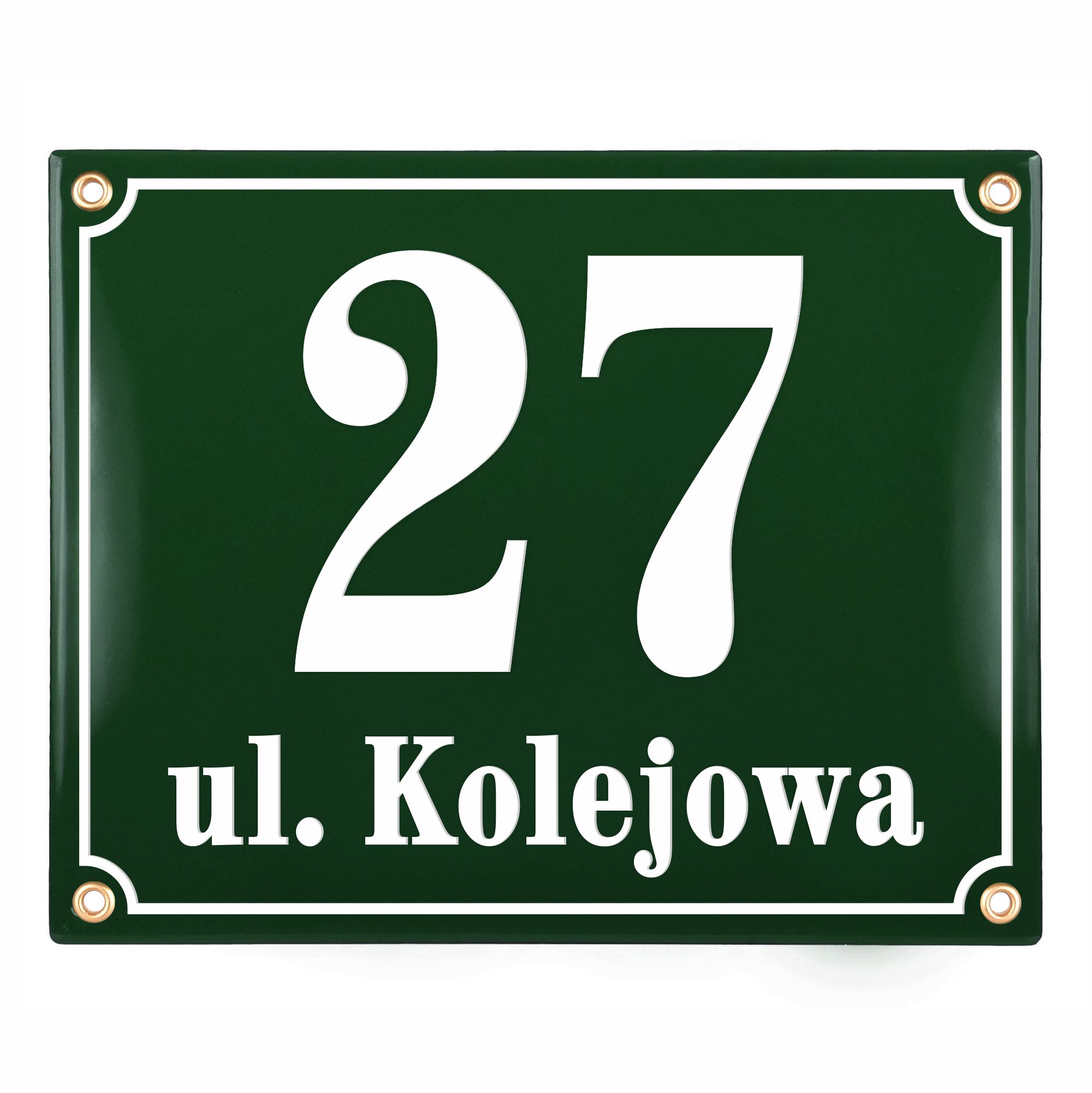Klasyczna tablica adresowa, metalowa, emaliowana, dwukolorowa, odporna na warunki atmosferyczne, personalizowana.