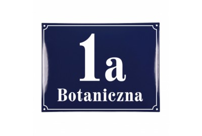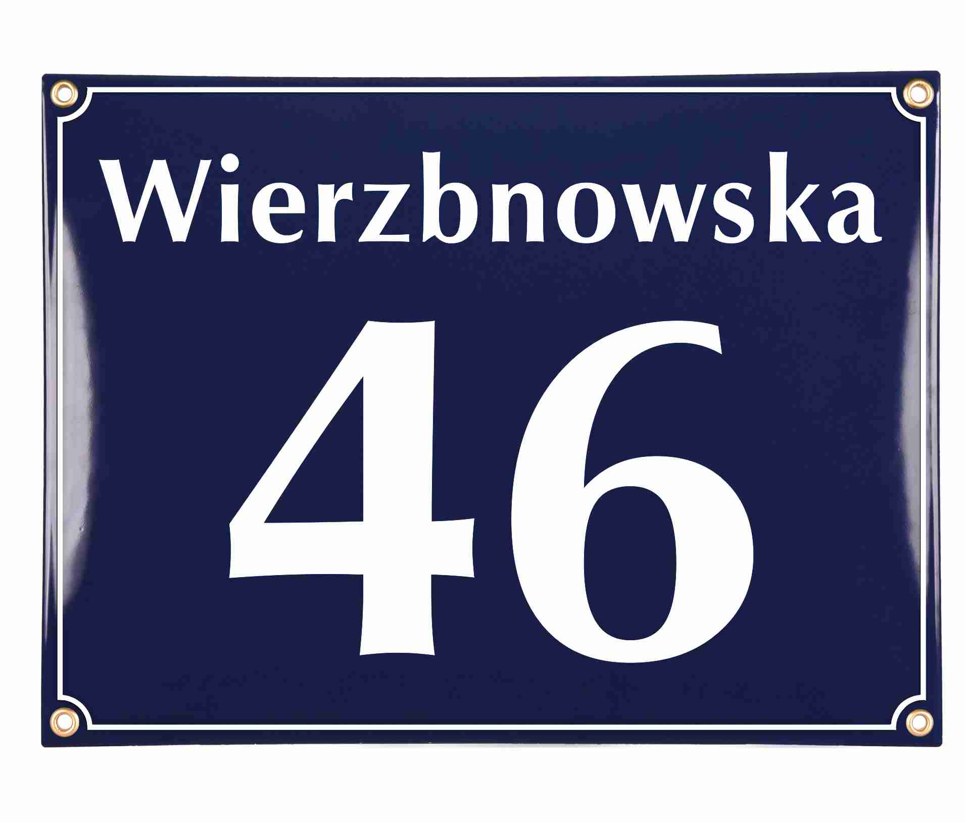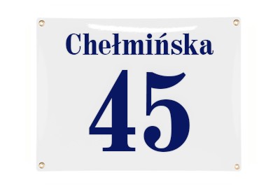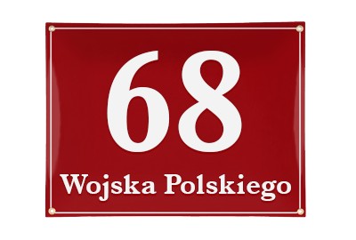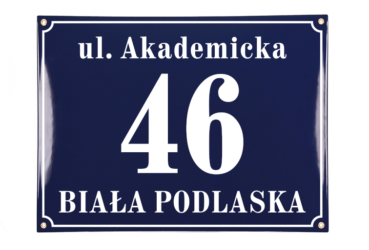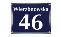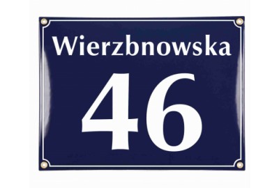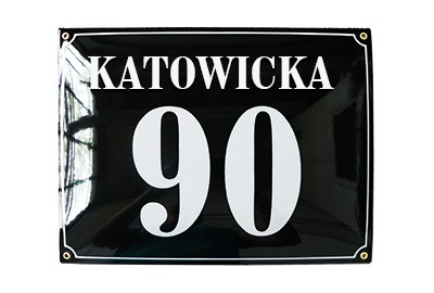Klasyczna tablica adresowa, metalowa, emaliowana, dwukolorowa, odporna na warunki atmosferyczne, personalizowana.