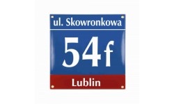 Klasyczna tablica adresowa trójkolorowa, metalowa, emaliowana, dwukolorowa, odporna na warunki atmosferyczne, personalizowana.