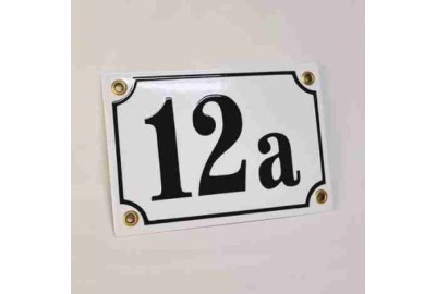 Klasyczna tablica z numerem, metalowa, emaliowana, dwukolorowa, odporna na warunki atmosferyczne, personalizowana.
