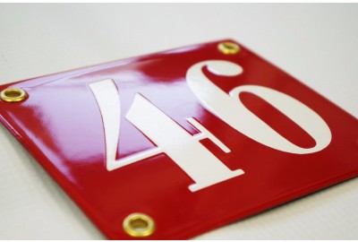 Klasyczna tablica z numerem, metalowa, emaliowana, dwukolorowa, odporna na warunki atmosferyczne, personalizowana.