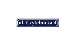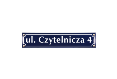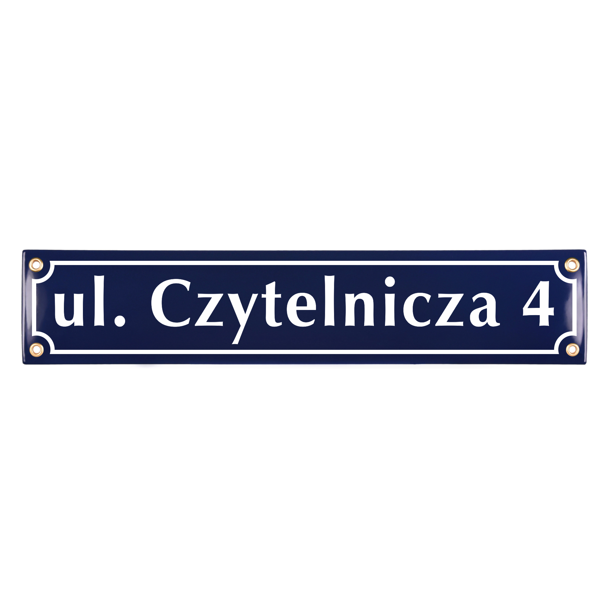 Klasyczna tablica adresowa, metalowa, emaliowana, dwukolorowa, odporna na warunki atmosferyczne, personalizowana.