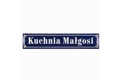 Klasyczna tabliczka informacyjna, metalowa, emaliowana, dwukolorowa, odporna na warunki atmosferyczne, personalizowana.