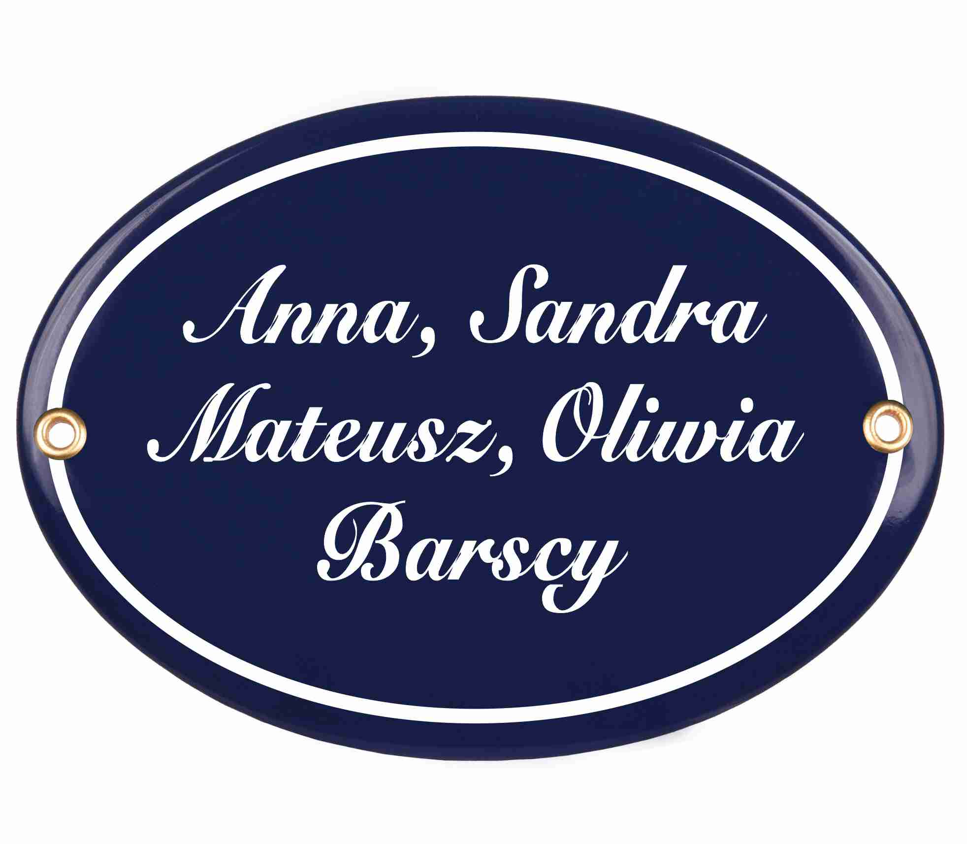 Klasyczna tabliczka na drzwi, metalowa, emaliowana, dwukolorowa, odporna na warunki atmosferyczne, personalizowana.