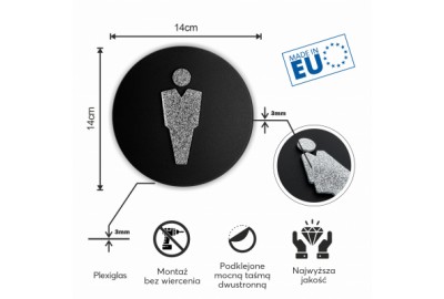 Tabliczka toaleta męska z brokatem czarny/srebrny
