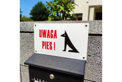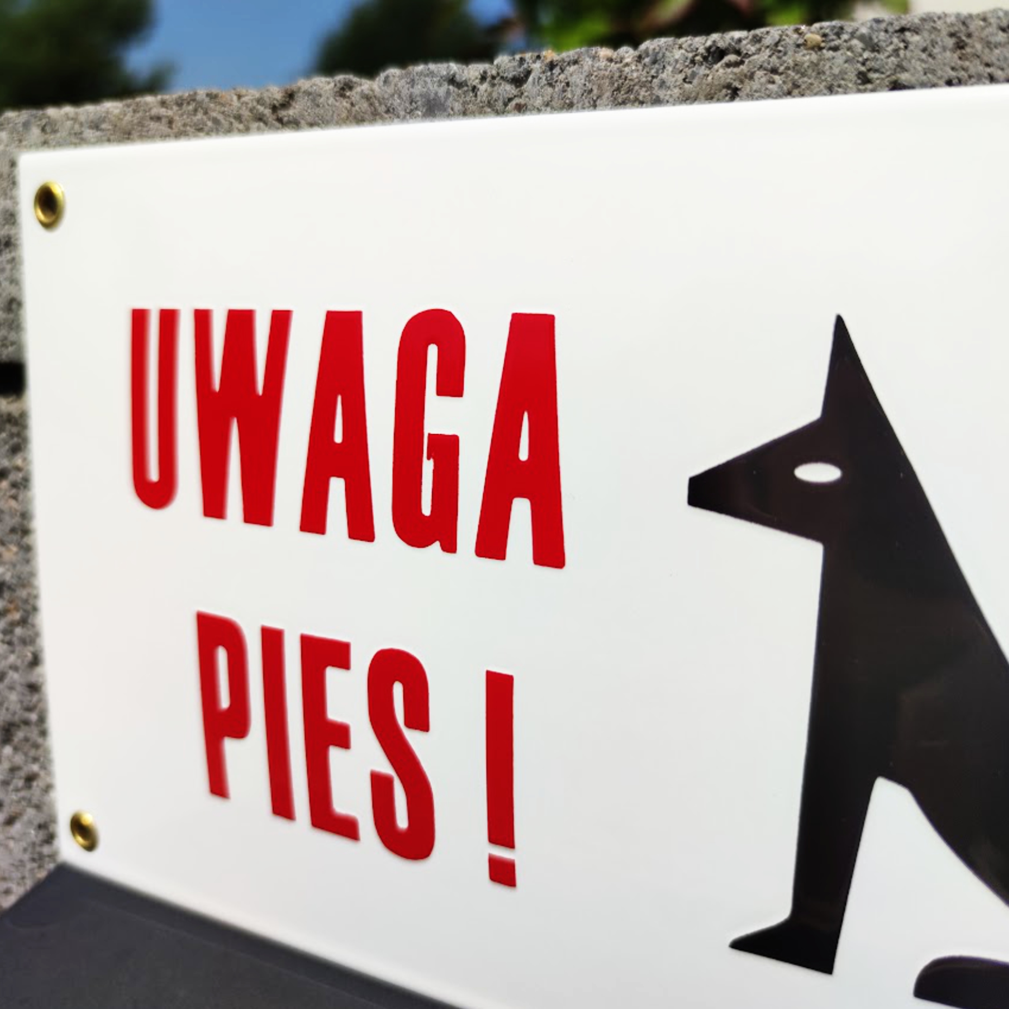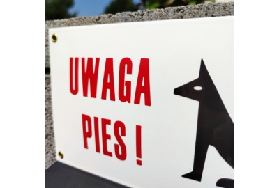 Tablica z laminatu grawerowana "UWAGA PIES"