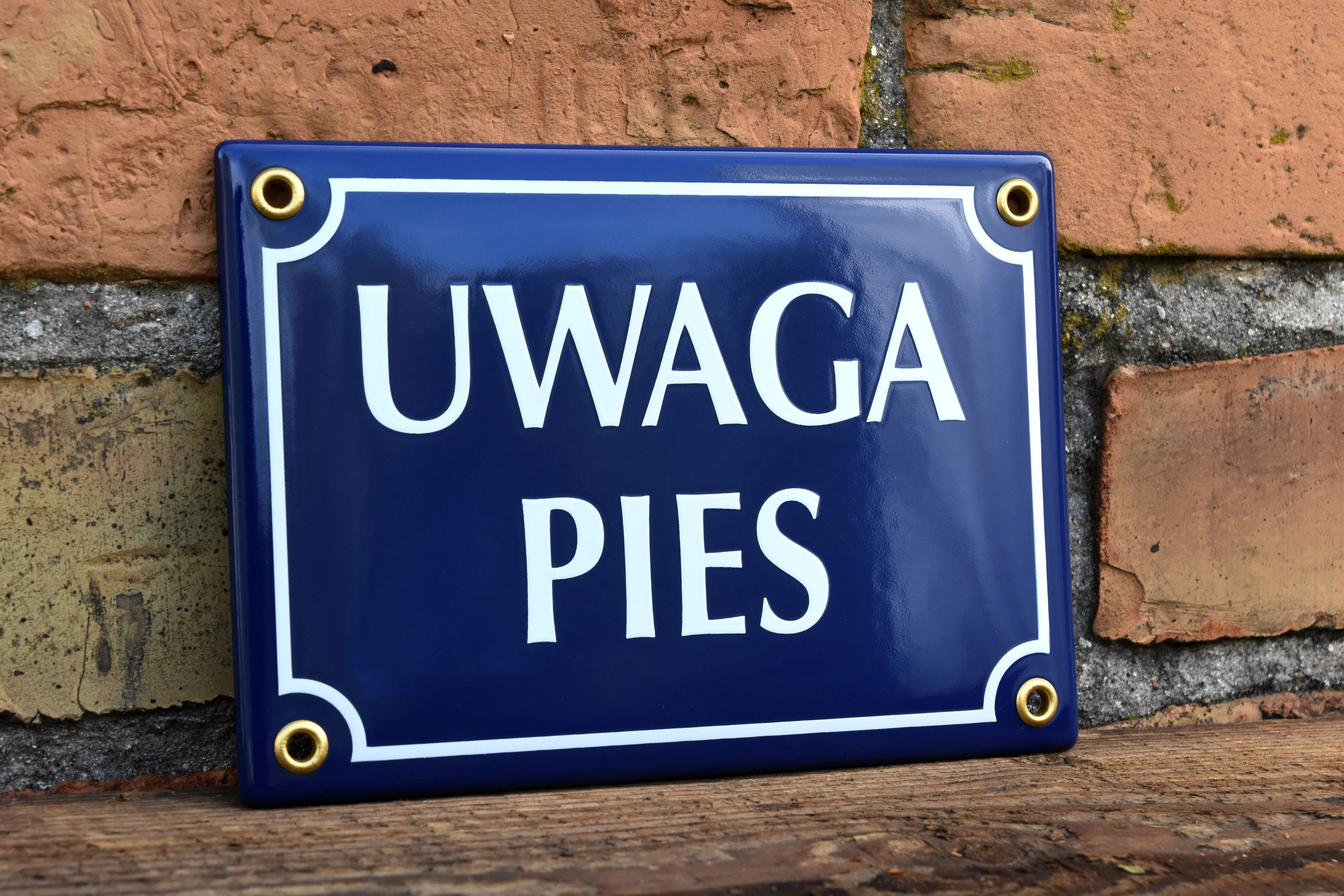 Tablica emaliowana, produkowana klasyczną metodą emalierską.