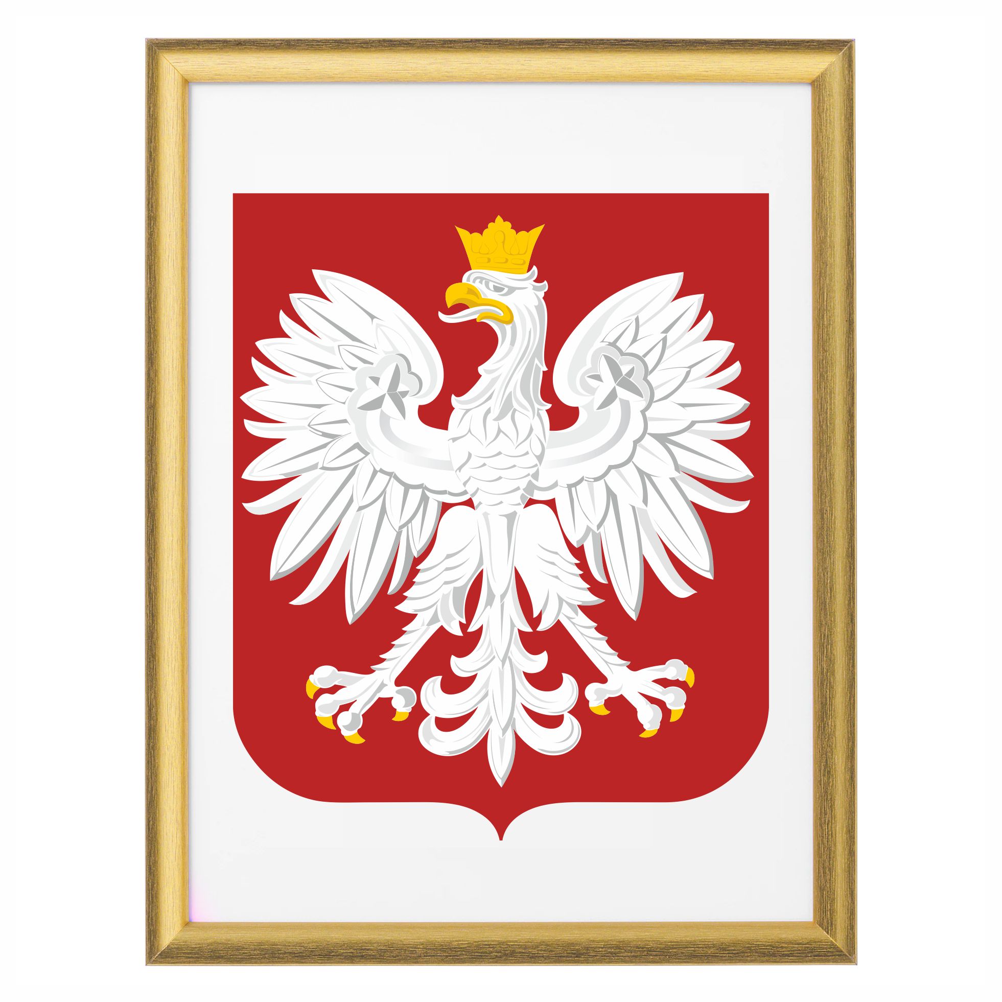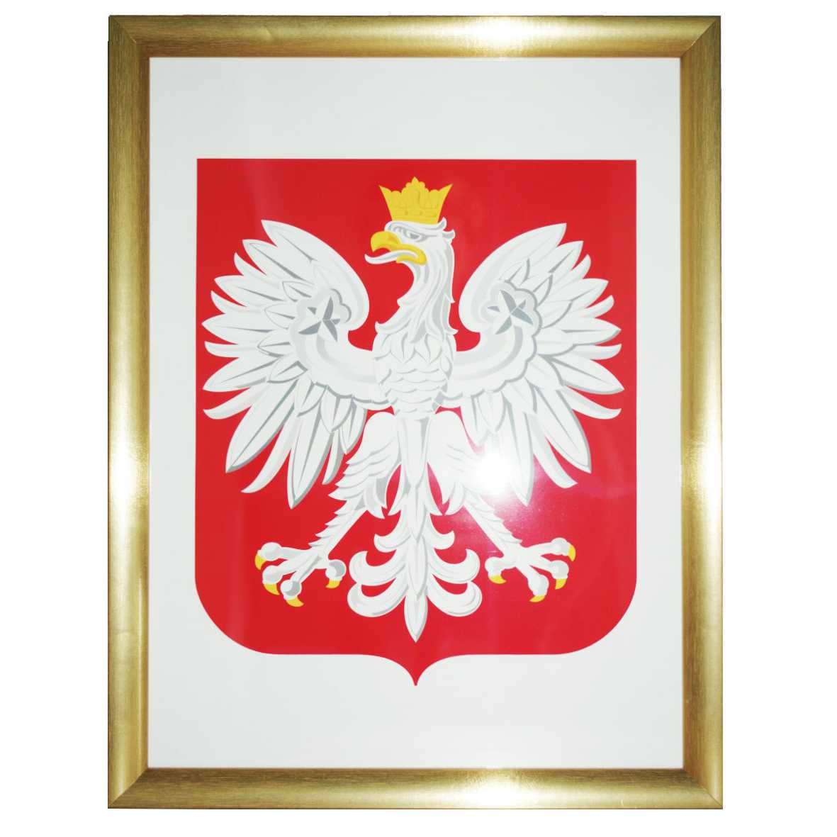 Godło Polski 30x40cm w złotej drewnianej ramie