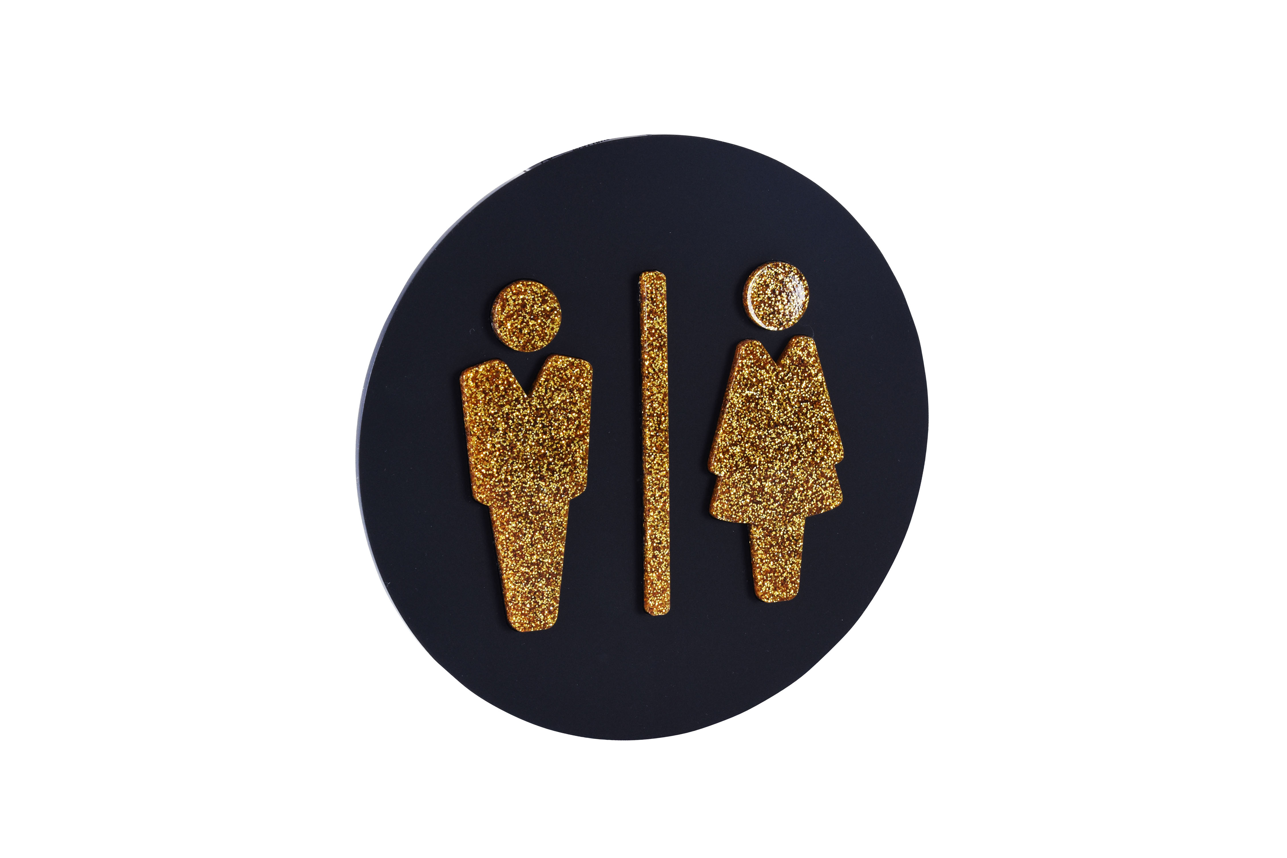 Tabliczka toaleta z plexi z brokatem czarny/złoty