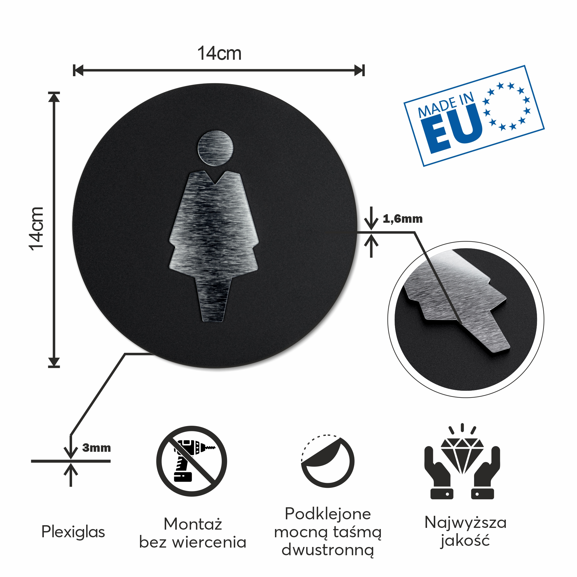 Tabliczka toaleta damska z laminatem czarny/srebrny