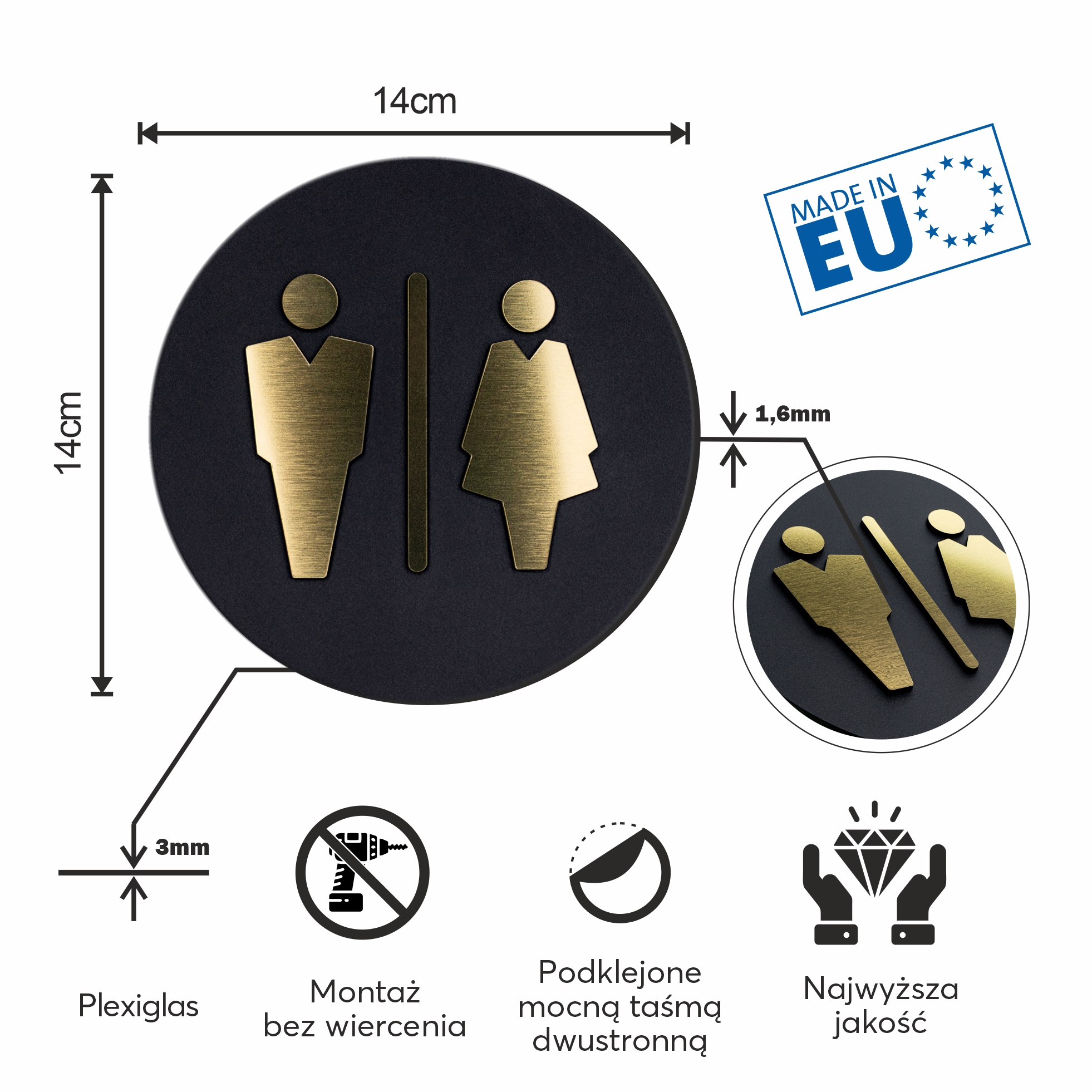 Tabliczki do oznaczenia toalet wykonane są z wielką precyzją z trwałych i nowoczesnych materiałów, dzięki czemu sprawdzą się zarówno w upalne lato, jak i bardzo mroźną zimę. Kolor tabliczki nie zmienia się pod wpływem promieni słonecznych, dlatego zakupiona tabliczka będzie służyła przez wiele lat.