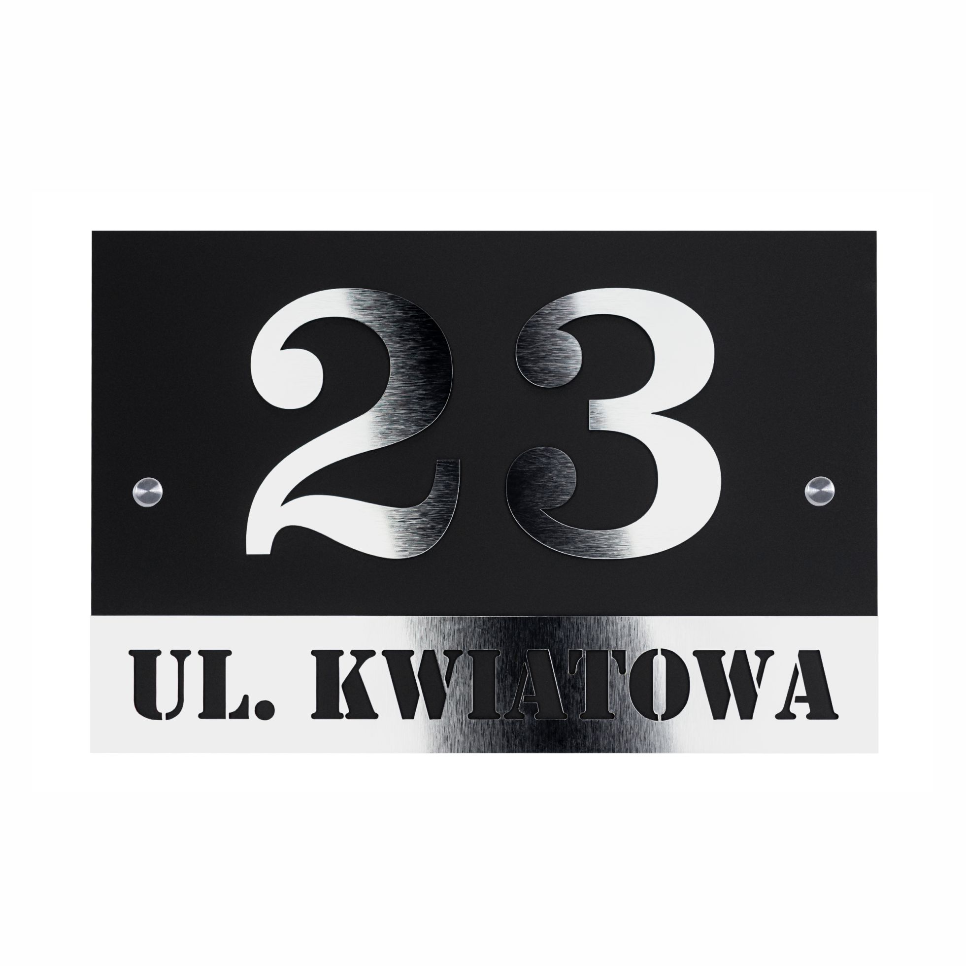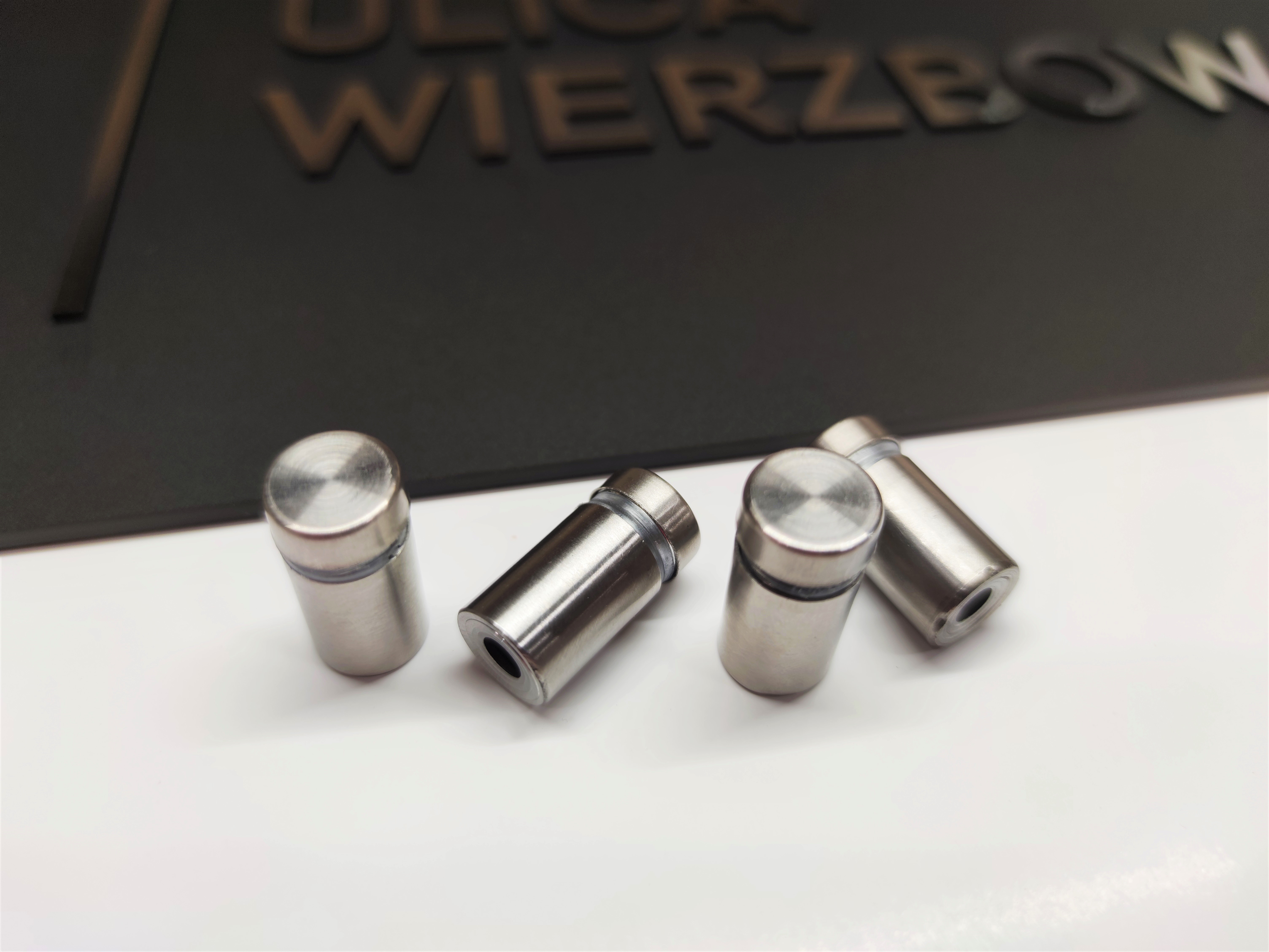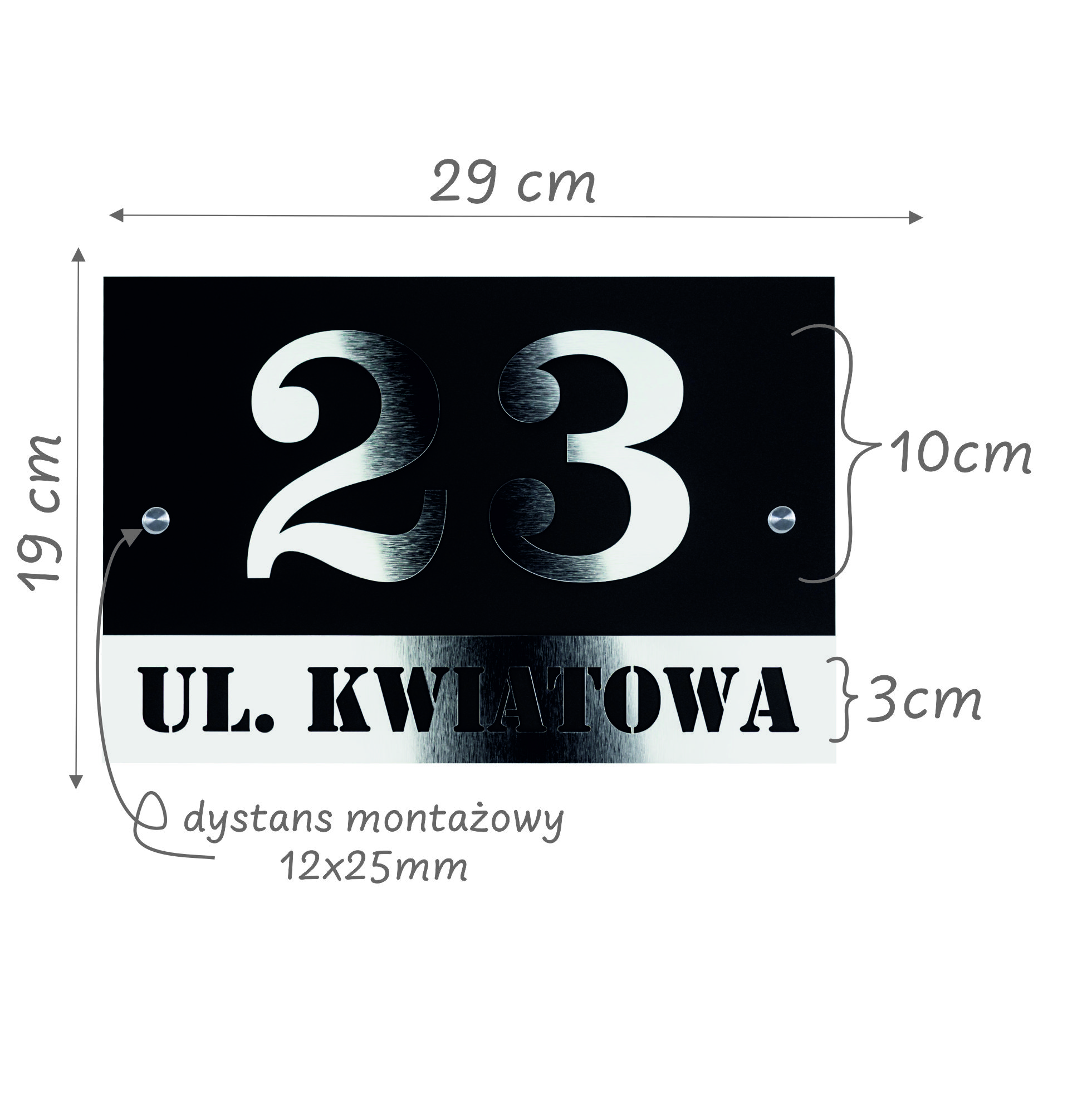 Numer na dom sprzedawany jest razem z 4 dystansami montażowymi (w zestawie z dystansami nie sprzedajemy kołków montażowych - należy je dokupić w zalżności od rodzaju ściany, miejsca, na którym będzie wisiała tablica.