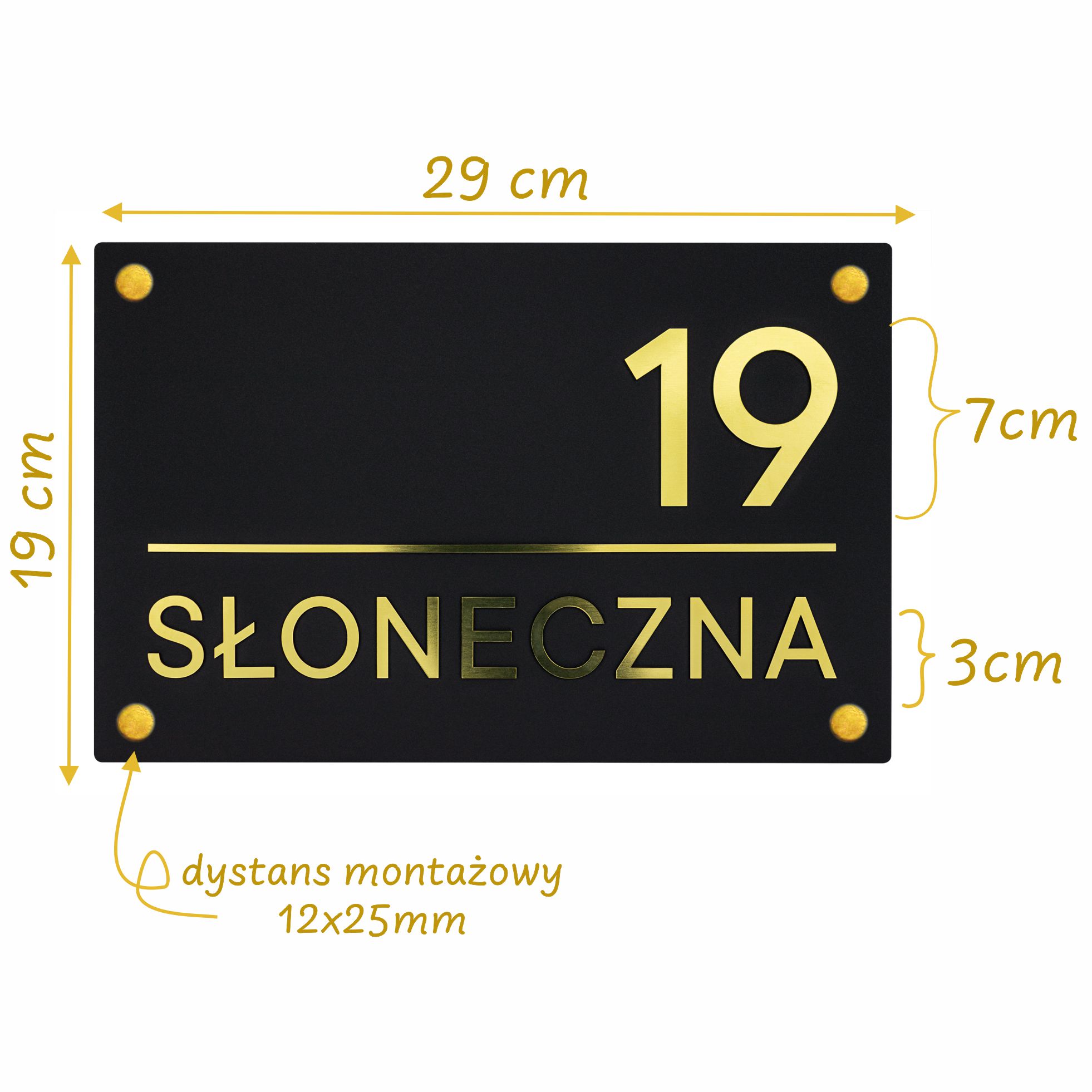 Numer na dom sprzedawany jest razem z 4 dystansami montażowymi (w zestawie z dystansami nie sprzedajemy kołków montażowych - należy je dokupić w zalżności od rodzaju ściany, miejsca, na którym będzie wisiała tablica.
